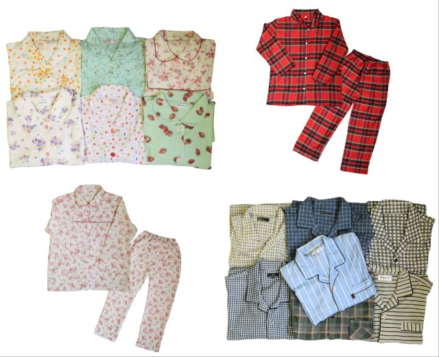 そんな同宿で始まるのが、昭和レトロなパジャマの貸し出しサービス。カラフルなチェック柄に可愛らしい小花柄、どこか懐かしさを感じるデザインなどなど、さまざまなパジャマが複数のサイズとともに用意されています。