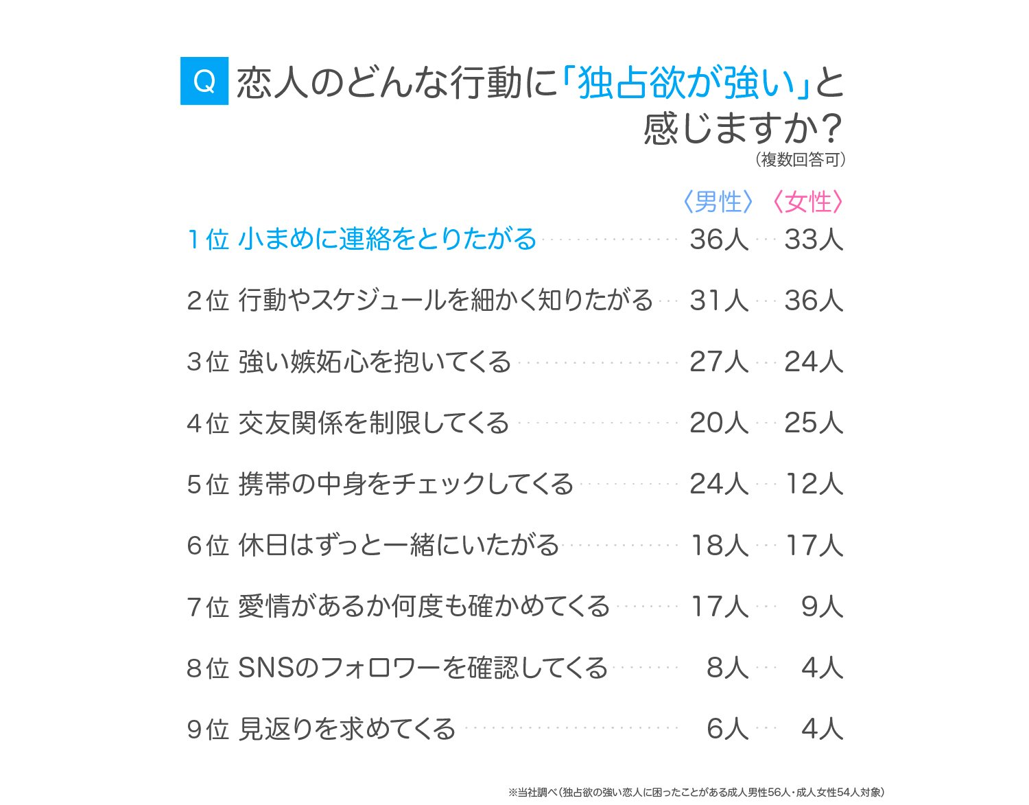 <独占欲が強いと感じた行動ランキング>