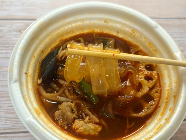 発売前にセブン‐イレブンの公式Xで目にして興味をそそられた「つるもち太麺春雨 麻辣湯」。