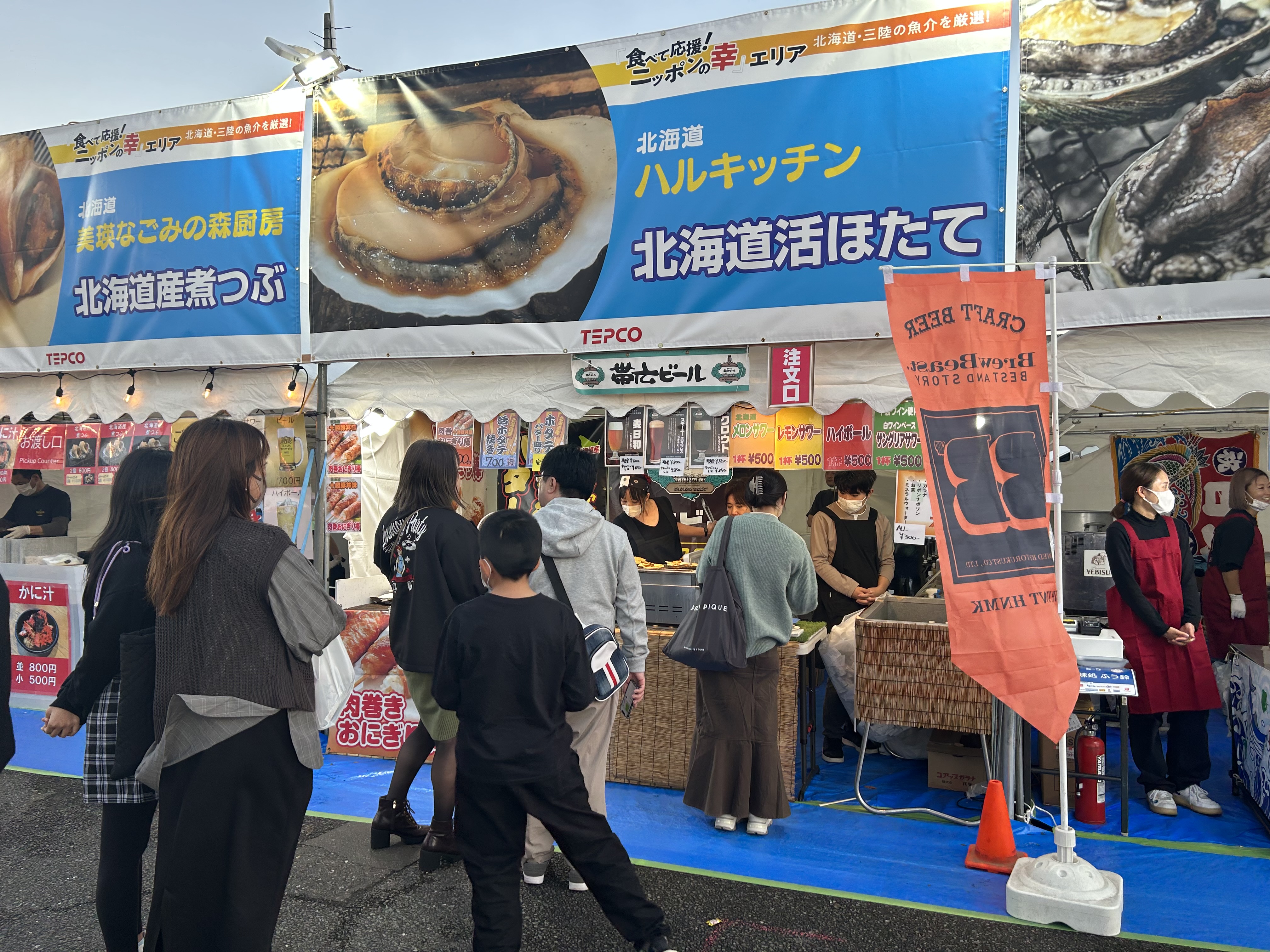 北海道および東北の魚介料理を集めたエリア。日本の漁業・水産業を応援するため、輸入規制の影響を受けたホタテや牡蠣を使用した珠玉のメニューが並びます。
