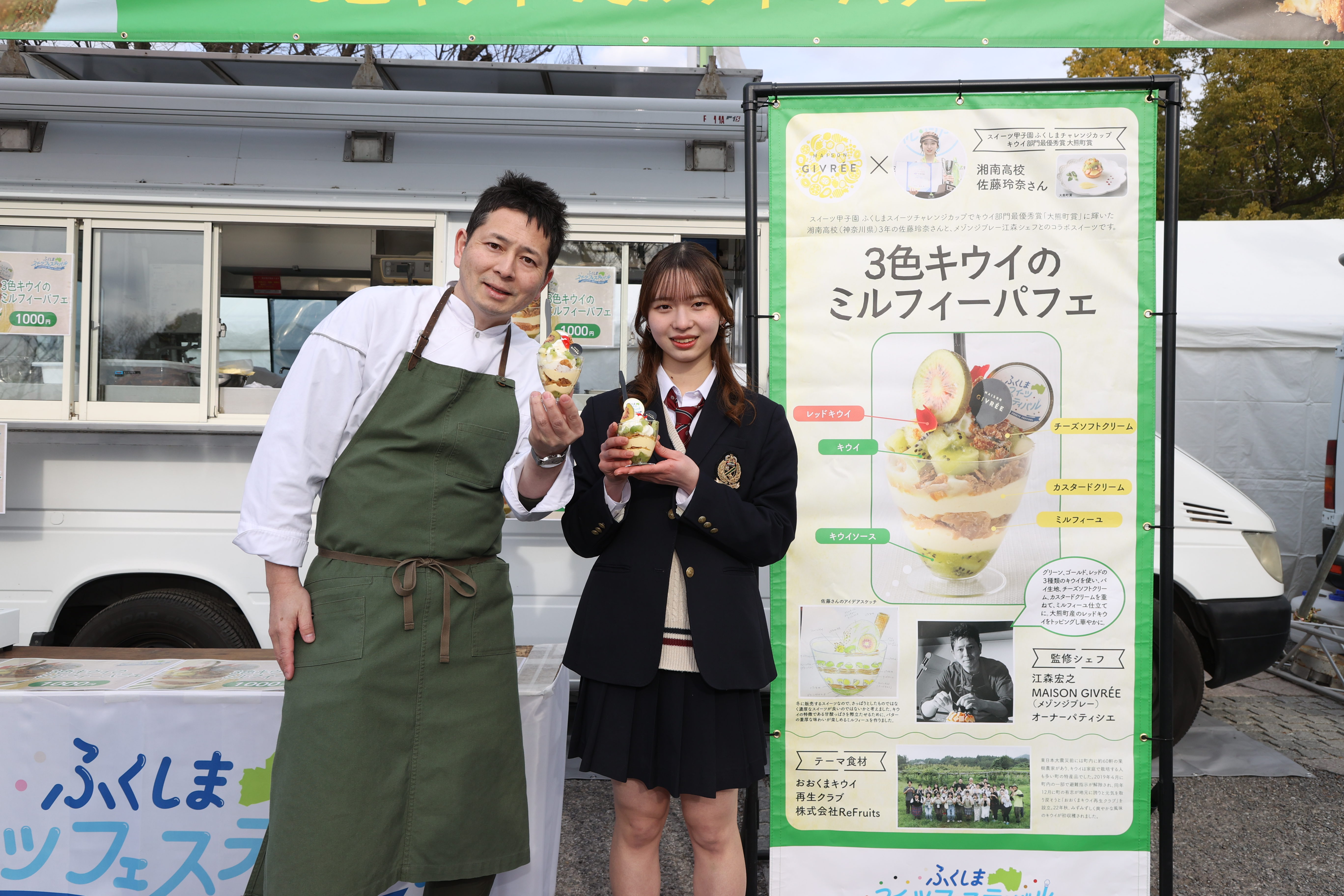 高校生×トップパティシエによる、福島県の特産品を使ったスイーツを限定販売します。大熊町のキウイ、富岡町のパッションフルーツ、楢葉町のサツマイモ、広野町産のバナナが極上のひと皿に生まれ変わる!