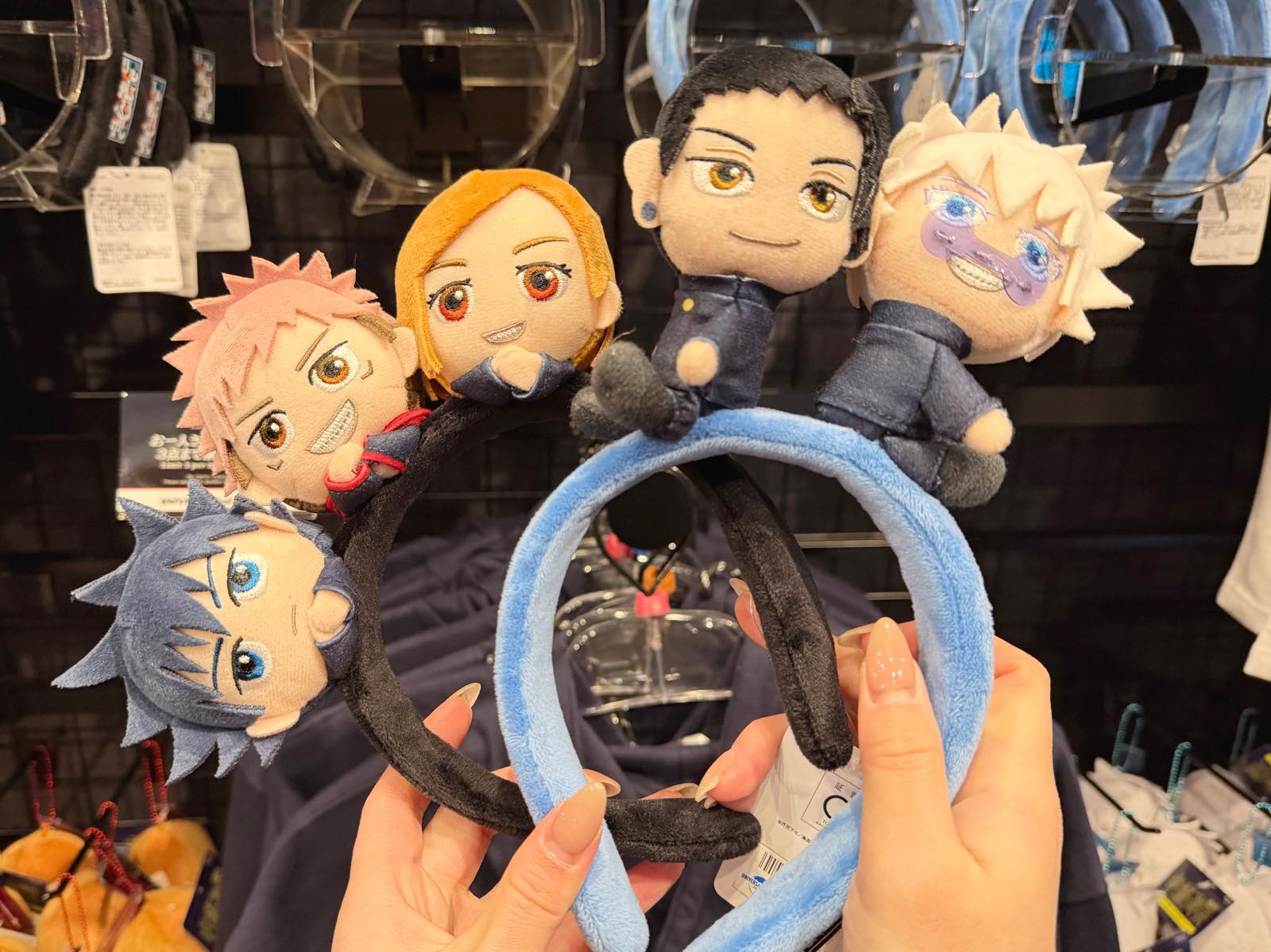 グッズは両作品ともオリジナル描き下ろしアートのTシャツや、ぬいぐるみキーチェーンなどが販売中。『呪術廻戦』は高専時代の五条と夏油が背中合わせになっているカチューシャ(3600円)を推したい……!