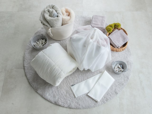 羽毛布団や掛け布団といった大きくて重い洗濯物は、洗濯中に布団が暴れすぎないように水流や摩擦をコントロールするのがコツ。容量に合わせて広がるタイプの洗濯ネットを使うのがおすすめです!