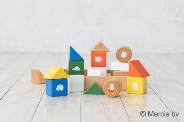 ディック・ブルーナが描く絵本で使われている鮮やかな「ブルーナカラー」を取り入れたつみき。ミッフィーや動物が描かれている6つのピースは、振るとカラカラと木の優しい音が鳴る仕掛けがついています。対象年齢は1.5歳~。つみきとして積み上げたり、音を鳴らしたりして遊ぶことで、子どもの好奇心を育んでくれますよ♪