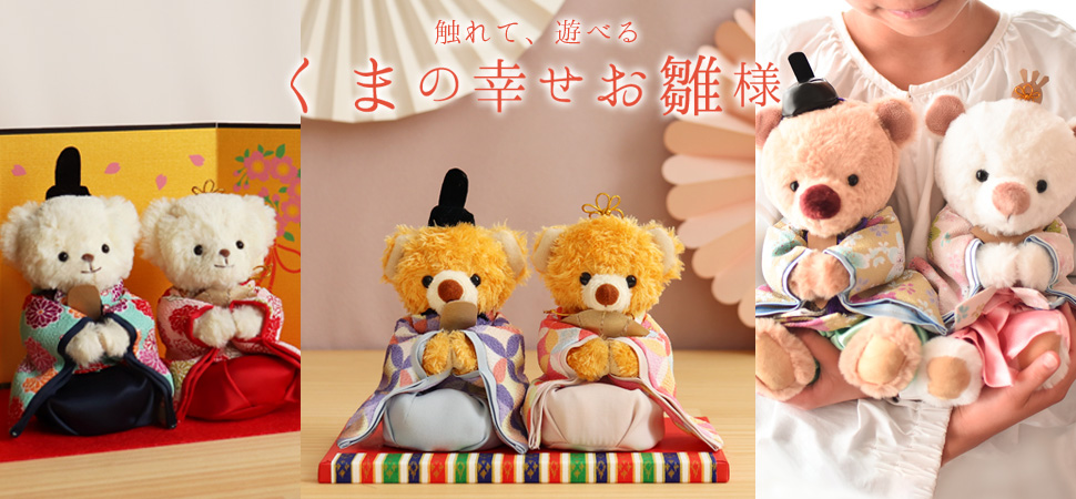こちらは、テディベアとおひなさまを融合させた「くまのおひなさま」。伝統を無理なくおしゃれに楽しむ、をキーワードにしたお部屋に飾りやすいおひなさまです。