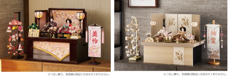 お内裏さまとおひなさまの2体なので、飾りやすくしまいやすい。季節にあわせて桜がデザインされているところも素敵です。華やかなピンクと洗練された雰囲気のホワイト、あなたならどちらを選ぶ?