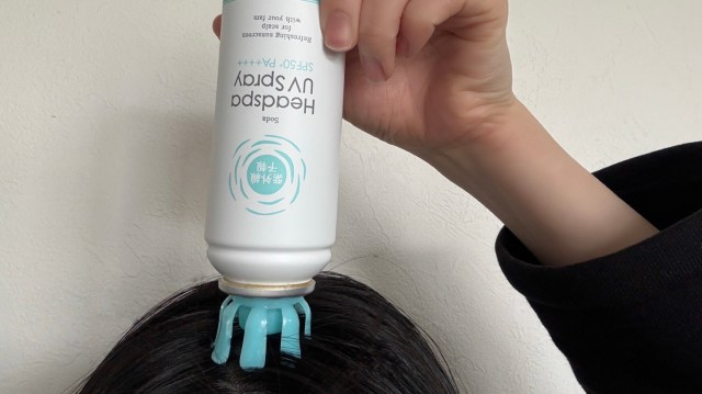 「紫外線予報 炭酸UVヘッドスパF」(1870円)は、頭皮用のUVカットアイテム。<SPF50+ PA++++/UV耐水性★★>と、紫外線カット効果も優秀です。