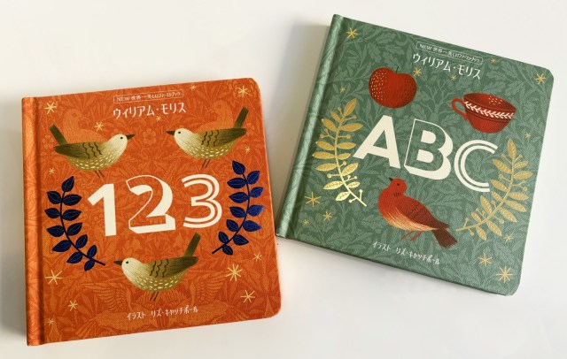 『NEW 世界一美しいファーストブック ウィリアム・モリス 123 / ABC』は税込み各1320円。全国の書店ほか楽天ブックス、Amazonなどで販売中です。