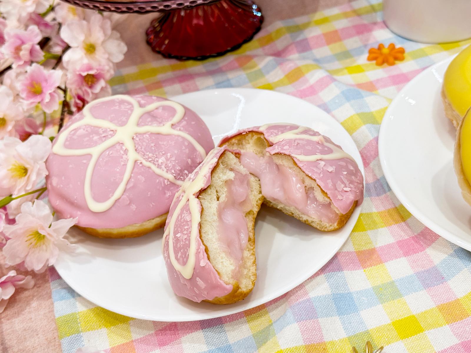 すでに販売中のフラワードーナツ2種も試食させていただきました。どちらも見た目が可愛すぎて、スプリング・ハズ・カム〜!