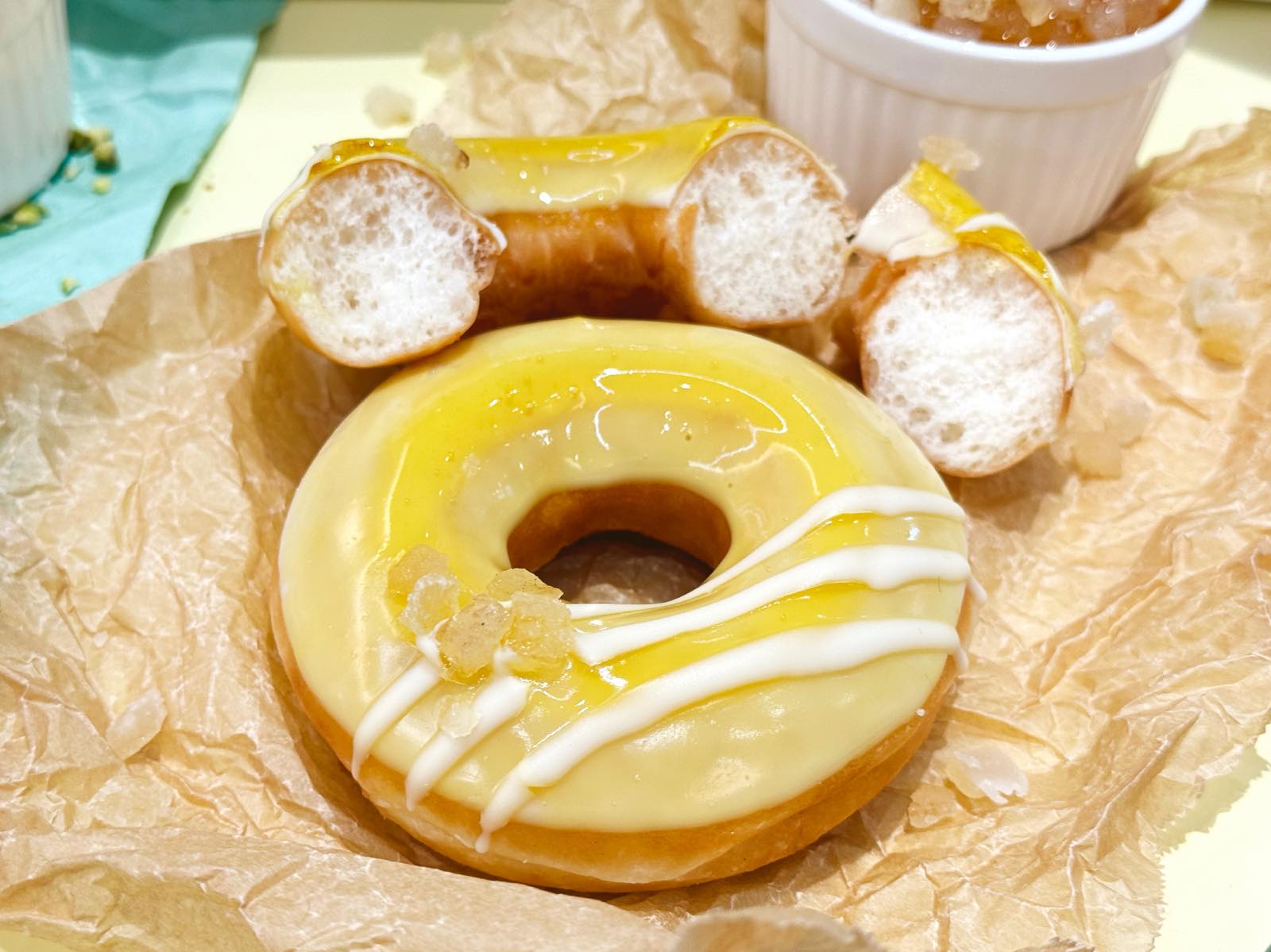 こちらはクリスピー・クリーム・ドーナツの定番のフワフワイースト生地。レモネード風味のナパージュでツヤっと春らしいカラーリングです。
