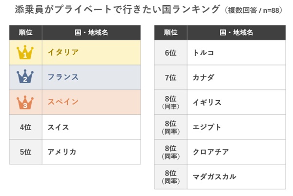 今回ご紹介するのは、「添乗員がプライベートで行きたい国ランキング」。