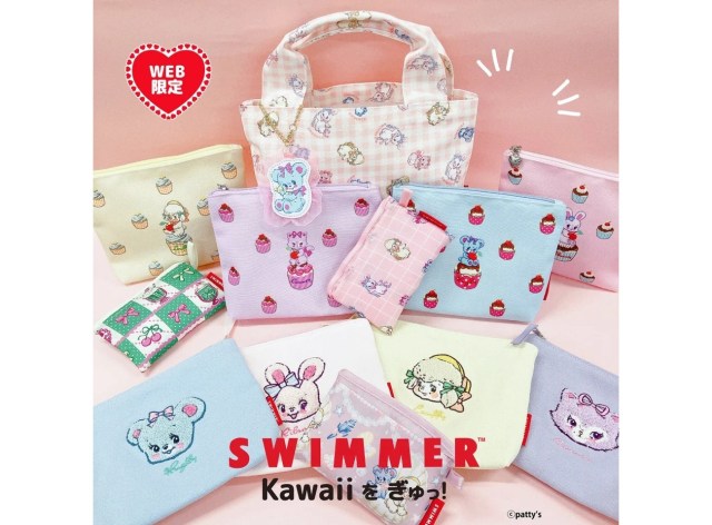 待望のスイマーデザインは、キャラクターたちがパーティーを楽しむ様子が可愛い「パーティーでぎゅっ!」(2090円)と、いちごやチェリー、小花が散りばめられた「花フルーツ柄」(2090円)が販売中です。