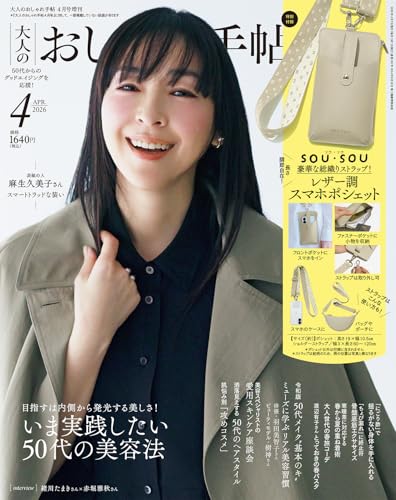 同日発売『大人のおしゃれ手帖』4月号増刊(1640円)の付録は「SOU・SOU [ソウ・ソウ] 豪華! SO-SU-U柄織ストラップ レザー調スマホポシェット」