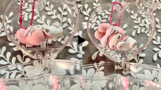 すやすや眠るマイメロディだけでもかわいいのに、ハート型のケースがさらにかわいさを倍増させています。