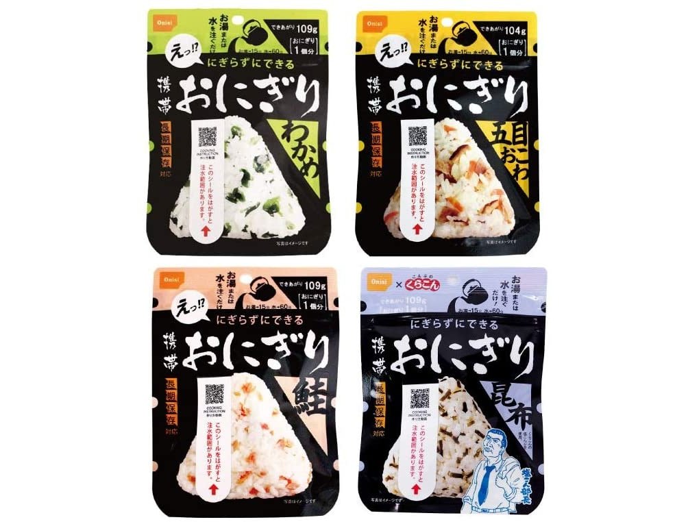 おすすめ理由:「お湯の場合は15分・水の場合は60分待つだけでおにぎりが完成」「具材が多くて食べごたえがあり、小腹を満たすのにぴったり」「お米は100%国産」「5年間保存できる」「1食あたり245円とコストが低い」