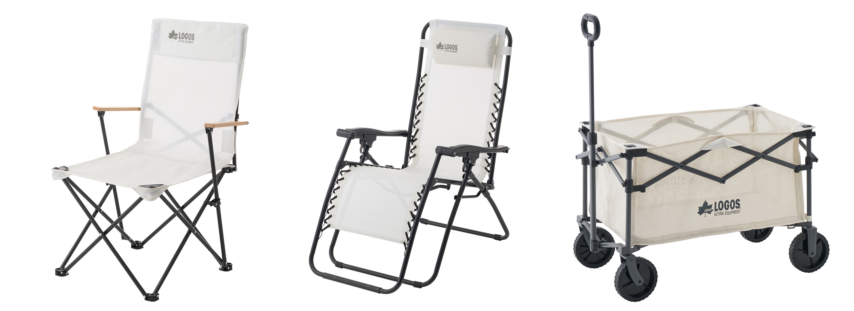 ラインナップはチェア2種類+キャリーカート1種類です。使用されている素材は通気性にも優れているため、汗をかいたままでも蒸れにくく、濡れた水着のままでも快適にくつろげるし、汚れた荷物も気兼ねなく載せられるのだとか。