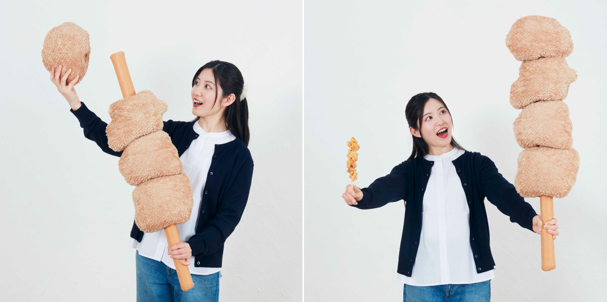 人気商品「からあげ棒」が90cmの特大ぬいぐるみに大変身。しかも串に刺さったからあげは1つずつ取り外し可能、おまけにホットスナック袋デザインの収納袋まで付いてくるのです。いや、あの、芸が細かすぎる(笑)。