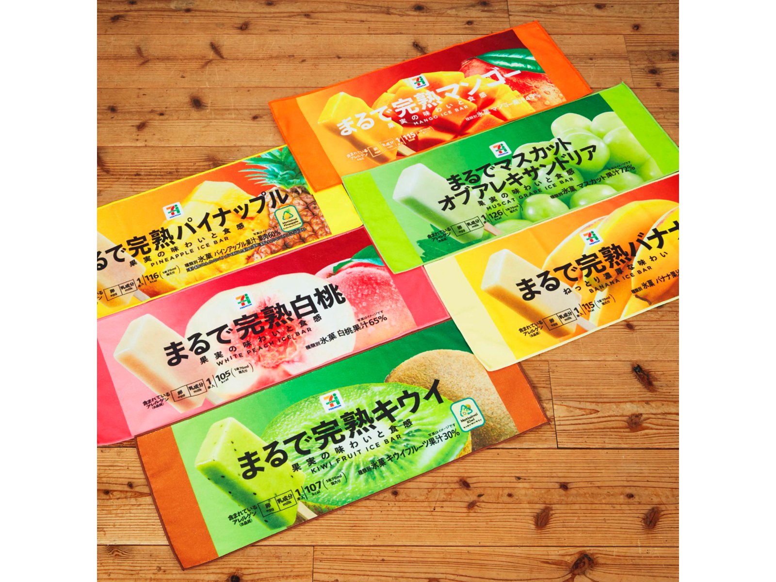 フルーツアイス「まるで」シリーズのパッケージがデザインされたロングタオル。ひと目で「あの商品ね!」と分かるビジュが潔いです。夏に使用したら涼しげに見える、かも。