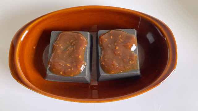 胡麻どうふを生まれてはじめて焼いてみたら、焼く前と比べると、角が取れて全体がとろんとろんになることが判明。表面に焼き色がついたり、固くなったりするわけじゃないのね。