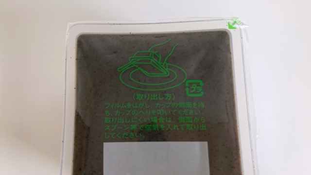 パッケージにきれいに取り出すコツが書いてあったので実践してみます。フィルムを剥がし、カップの側面を持って、カップの縁をトントンと叩くと……