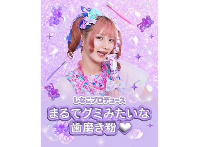 原宿系動画クリエイター・しなこがプロデュースするブランド「ピナコ(Pinaco)」から歯磨き粉が登場♪ 香りも味もあま~いぶどうグミ味風で、「歯ラ歯ラ♪」と歌いながらゴキゲンに歯磨きができそう!