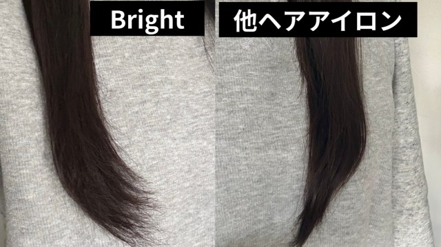また、いつも使っているヘアアイロンと「3D シルク ストレート アイロン」での仕上がりを比べてみたところ、ストレートにするところに大きな差は出なかったものの、毛先のニュアンスは違いが!!