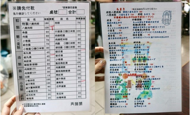 まずは入り口でメニュー表を受け取り、席に着いてから注文内容を記入します。日本語メニューもあるので、見比べながら記入できて安心です。