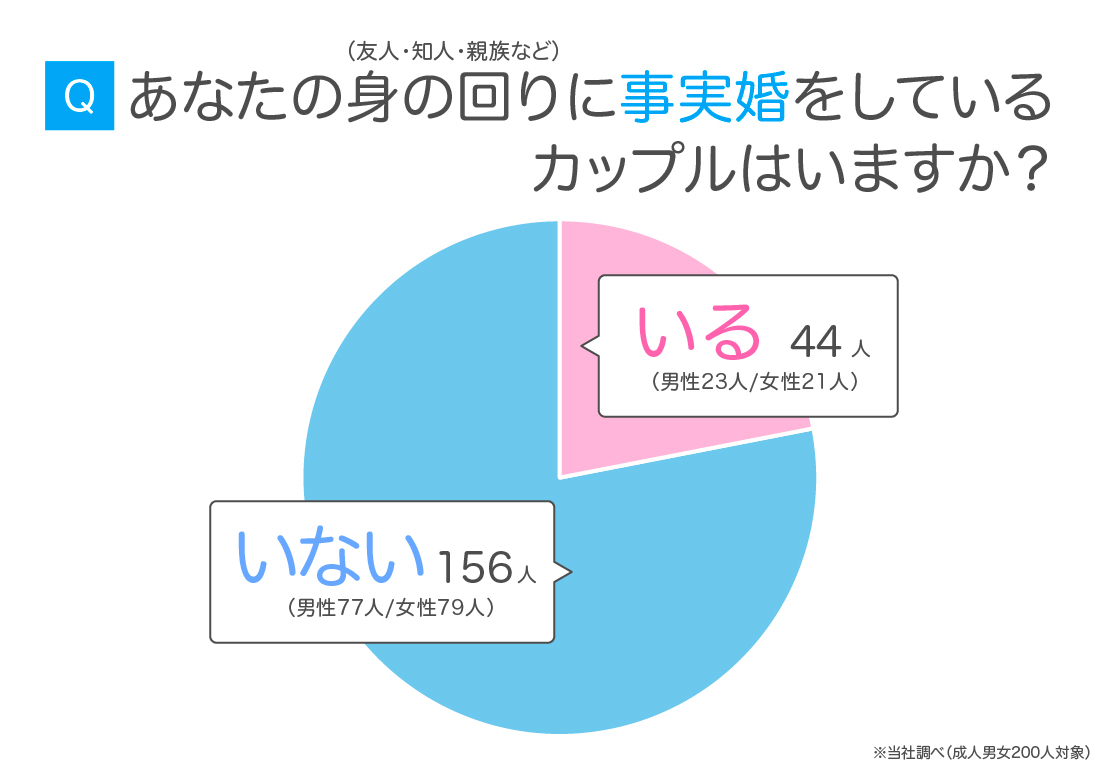 ちなみに、今回の調査において「身近に事実婚カップルがいる」と回答していた人は約2割でした。