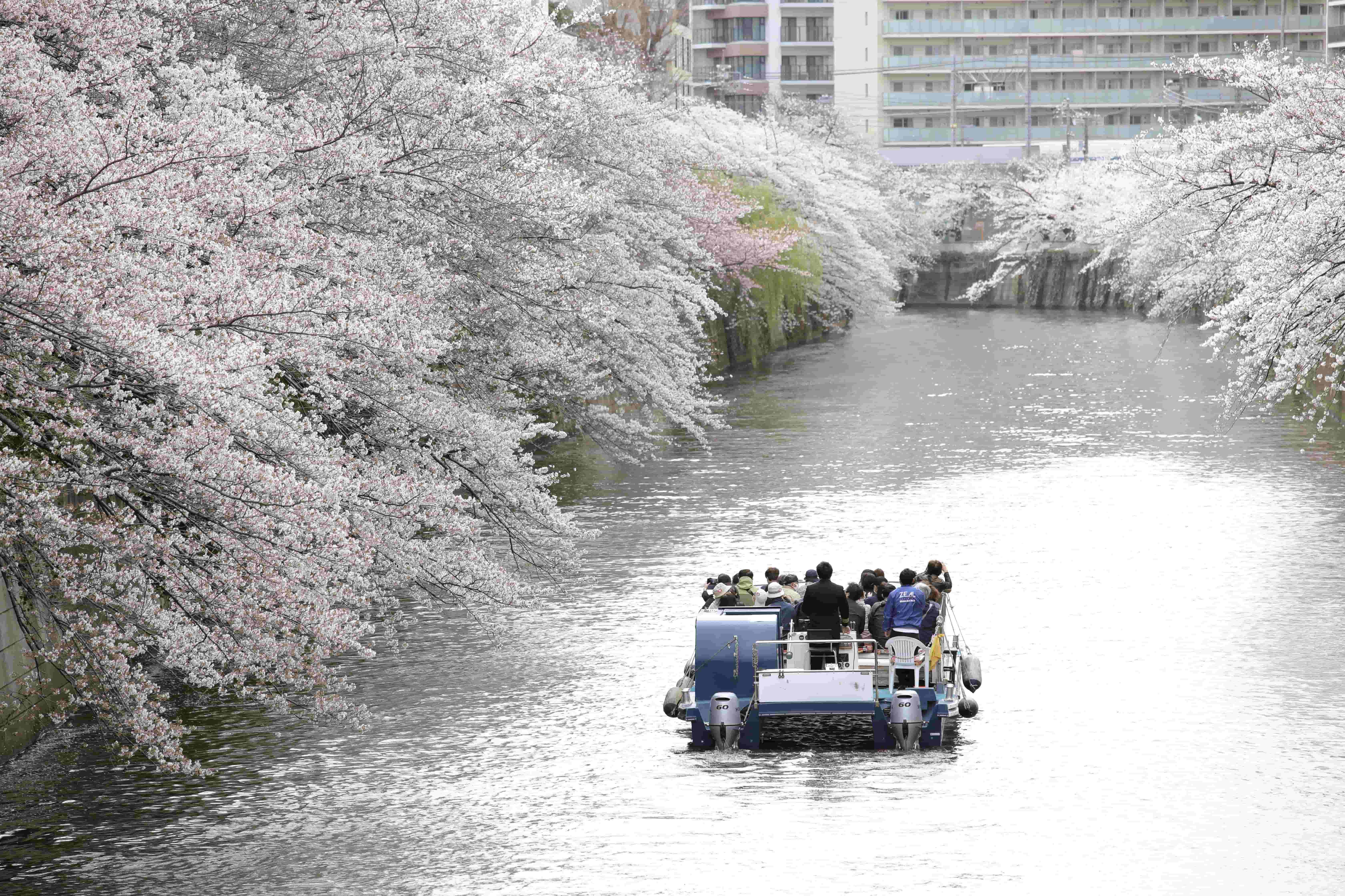 もしも人混みが苦手なら、歩道ではなく目黒川のほうから桜を鑑賞できる「目黒川お花見クルーズ」(※有料)はいかがでしょうか。約4km・800本におよぶ桜を約60分間かけてゆっくりと堪能できます。普段では体験できない「水面からの眺め」を楽しんじゃいましょう。
