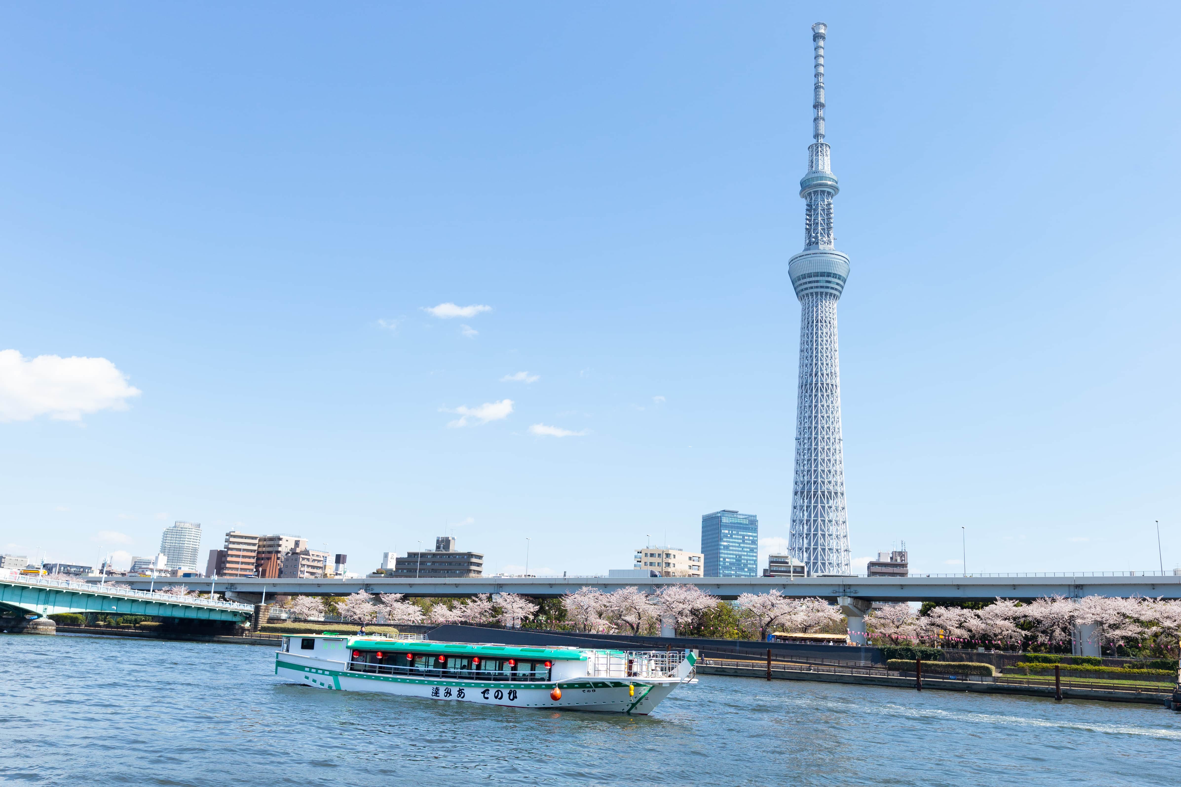 また隅田川といえば、東京スカイツリーが見られる場所としてもおなじみ。お花見シーズンには東京スカイツリー×桜を堪能できる「お花見屋形船」(※有料)も運行しています。遮るもののない360度のパノラマビューを体験しちゃお。