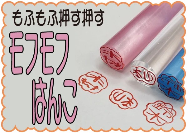 雲や動物などを参考にした “モフモフ” な専用書体を採用したはんこ。外枠だけでなく名前の書体も丸みがあるものが使われていて、見ているだけで癒やされそう♡