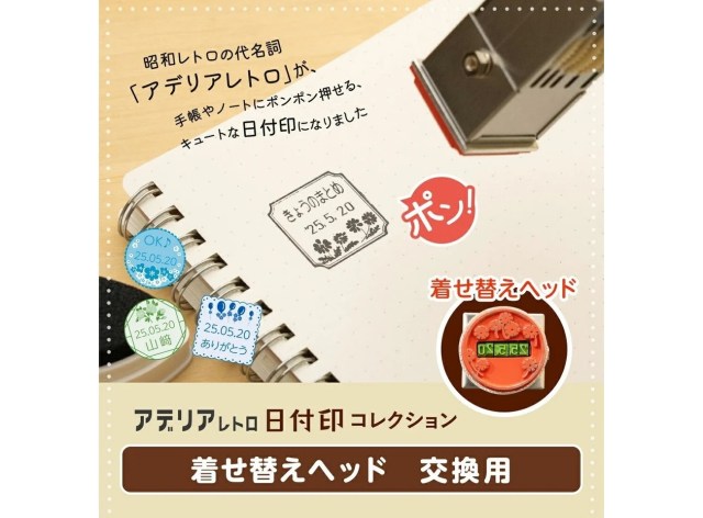 昭和レトロなデザインで人気の「アデリアレトロ」が、手帳やノートにポンポン押せるキュートな日付印になって登場。