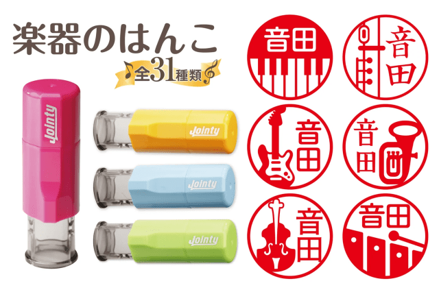 楽器に親しんでいる人や音楽好きな人におすすめしたい、名前入り×楽器イラストのオリジナルはんこ。