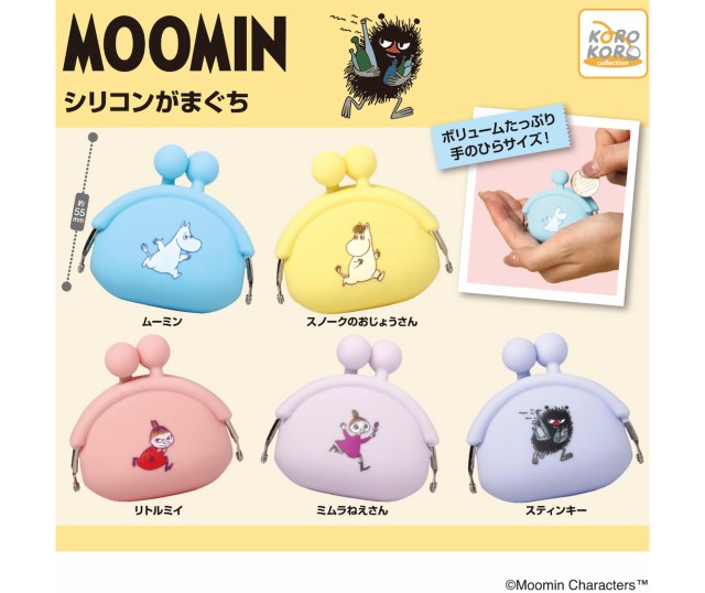 ムーミン谷の仲間たちが、手のひらサイズのがまぐちになって登場♪ ラインナップは「ムーミン」「スノークのおじょうさん」「リトルミイ」「ミムラねえさん」「スティンキー」の全5種類です。