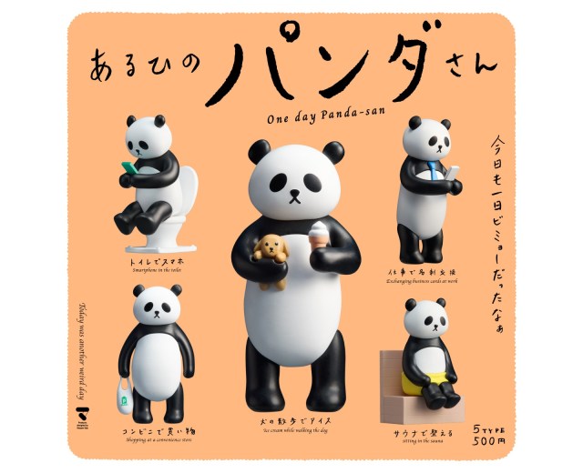 カプセルトイアーティスト・飯田マサミさんによるカプセルトイシリーズ第2弾。トイレでスマホを触る、仕事で名刺を交換する、サウナでぼんやりするなど、私たちの日常のワンシーンが、パンダを通して全5種類で擬人化表現されています♪