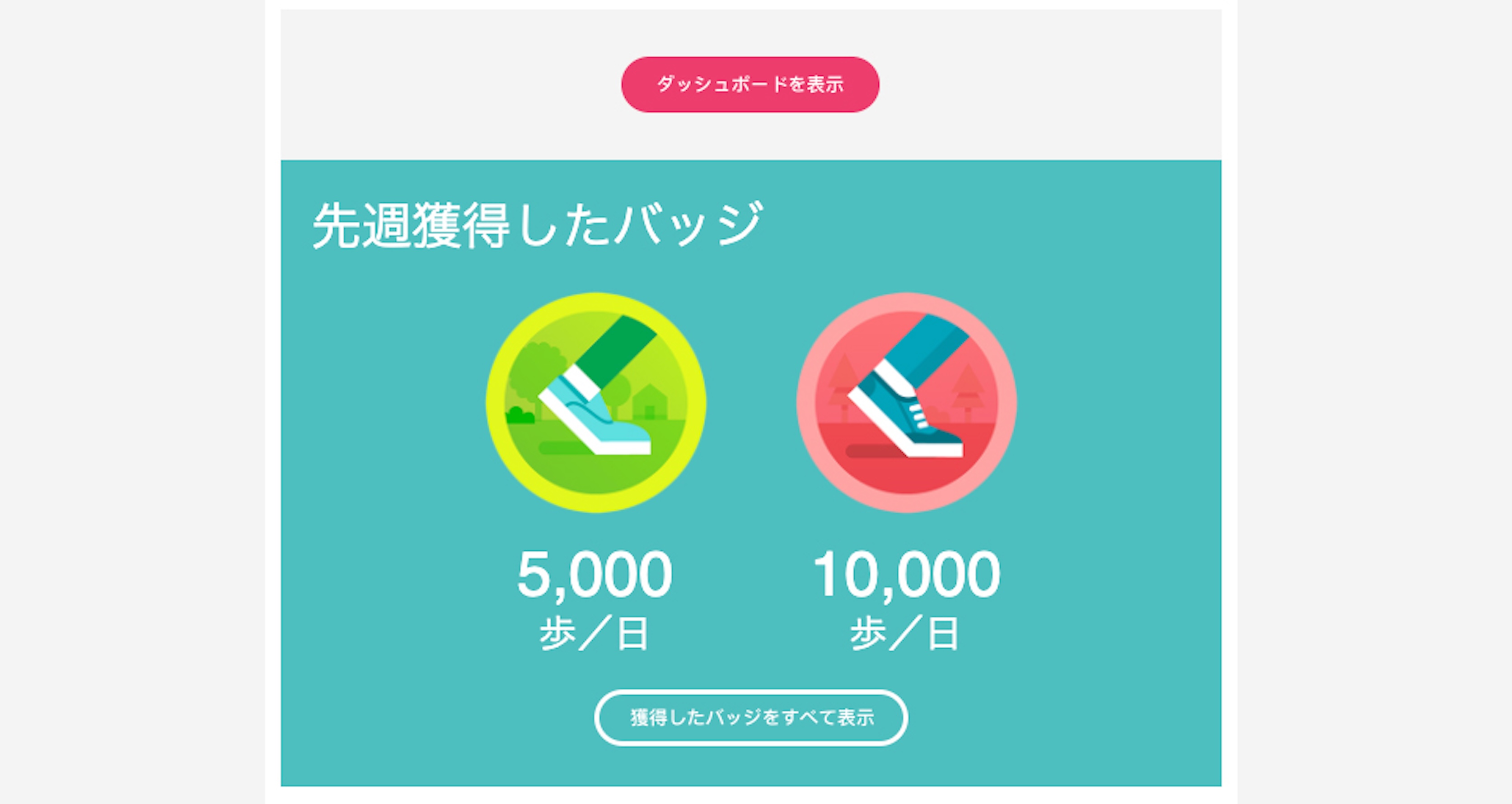 獲得バッジを見ると「たしかにあの日、めっちゃ歩いたもんな…」と思い出してニヤニヤできるおまけつきです。