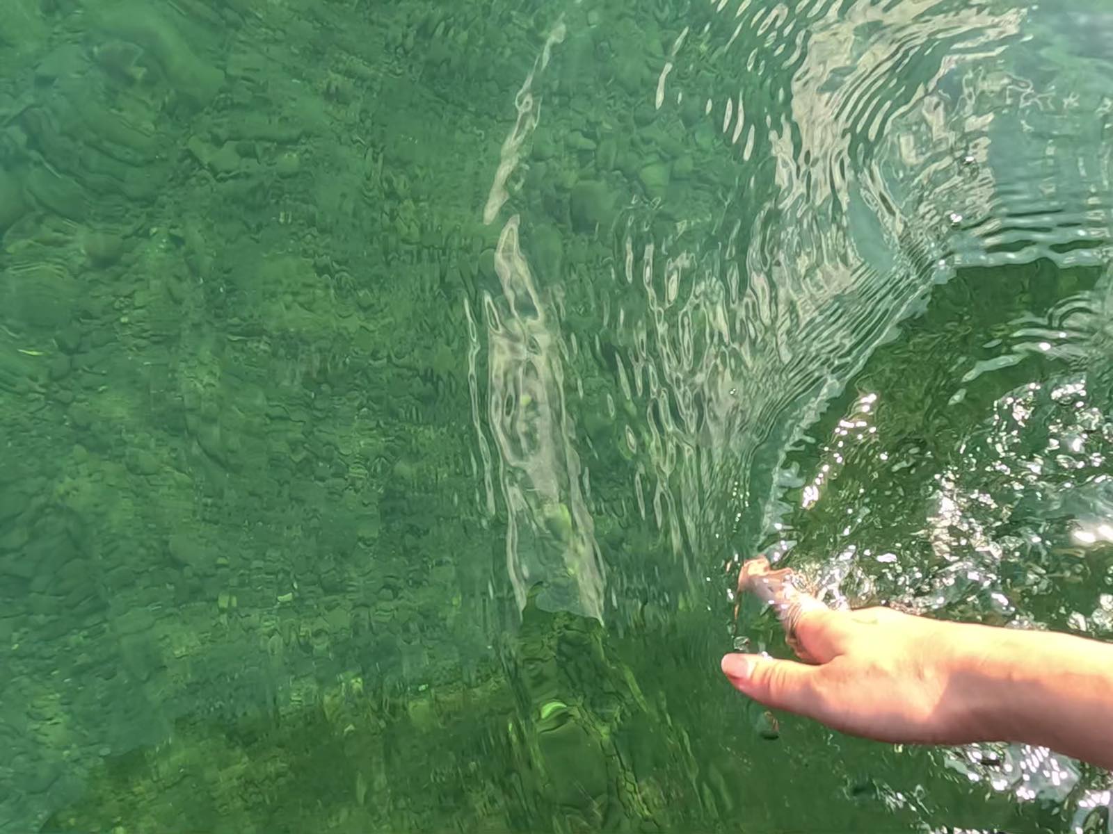 冷たい水の感触。鳥の鳴く声と、深い山の色。川の水が、エメラルドグリーンのように見えるのがちょっと不思議。な〜んにもしない、ただ山の空気と川の水の冷たさを感じる時間をしばらく堪能しました。