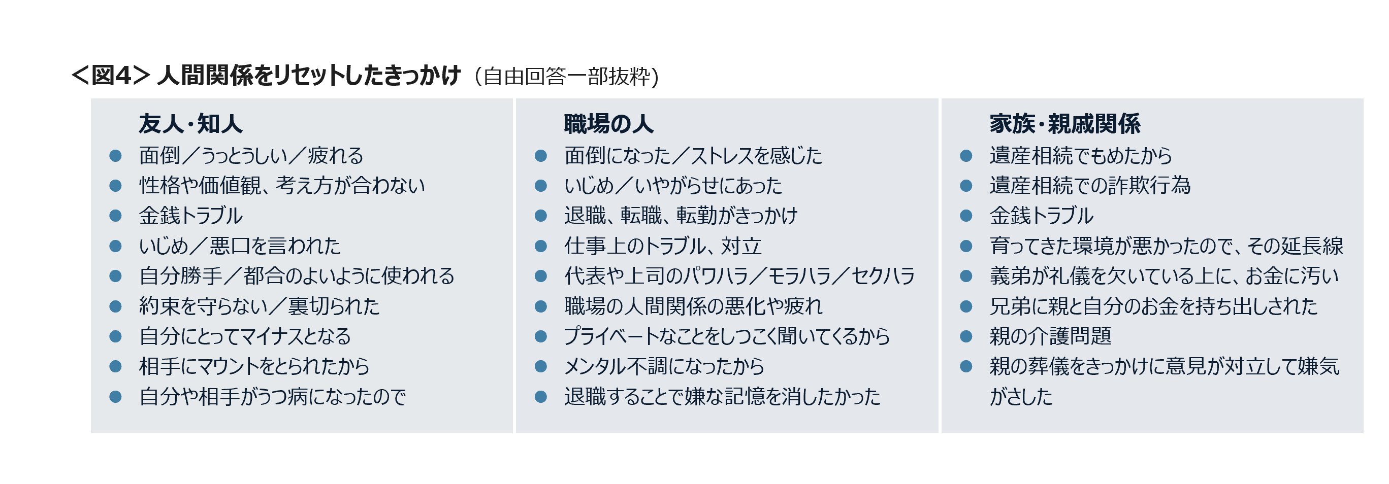 <家族・親戚関係と人間関係リセットしたきっかけ>