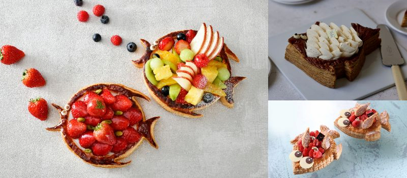 おどけた表情の魚がかわいらしいパイを2種類ラインナップ。旬のいちごをたっぷり飾った「ポワソンダブリル(苺)」では、フレッシュないちご×やさしい甘さのカスタードクリームによるマリアージュを楽しめちゃう!