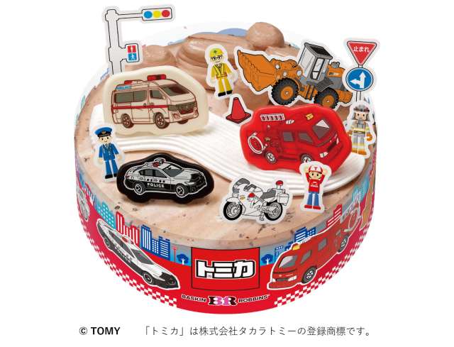 そんなトミカとサーティワンが初コラボ! はたらく車が大集合したスペシャルなアイスケーキが誕生しましたよ~っ!!