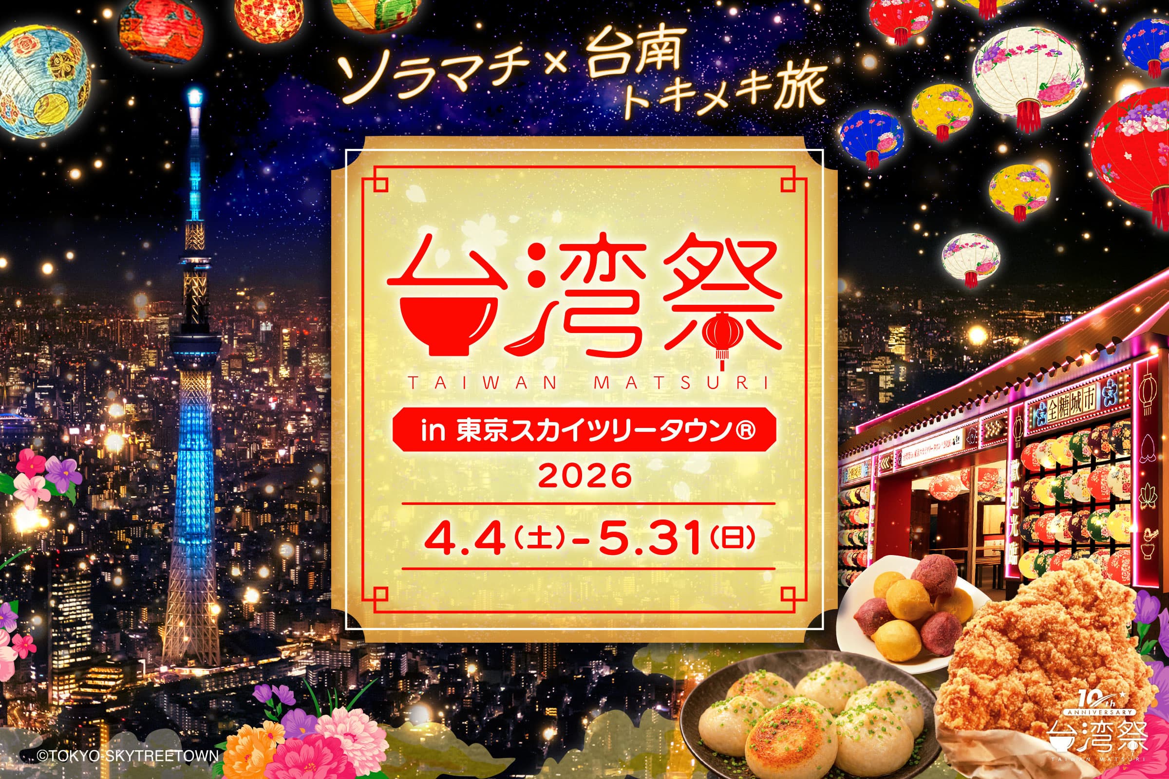 2026年4月4日から5月31日まで東京スカイツリータウン®で開催される「台湾祭in東京スカイツリータウン®2026-台南ランタン祭-」。