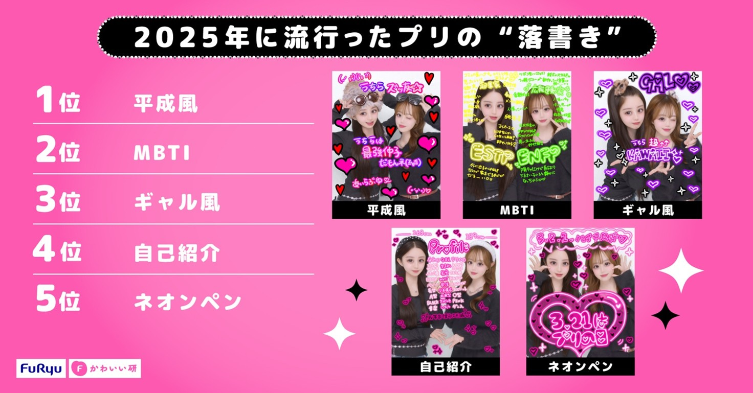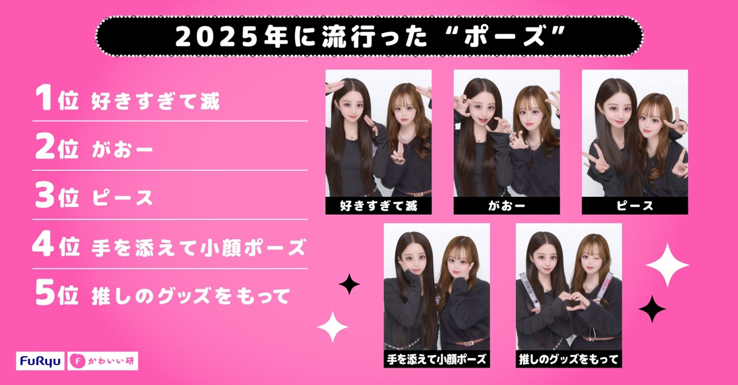 フリューでは、13歳〜28歳の女性204名を対象にした「プリ流行調査 2025」も公開しています。令和の若者のあいだではどんなポーズや落書きが流行っていたのでしょうか。