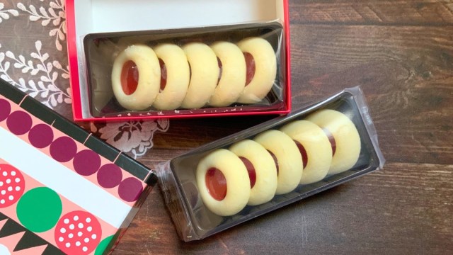 店舗で販売されている5種類のクッキーの中から選んだのは、ブランド1番人気で北欧の定番お菓子でもある「ハッロングロットル(ストロベリー)」。個包装ではありませんが、5個ずつ包装されているので1〜2人の少人数でもいただきやすいです。