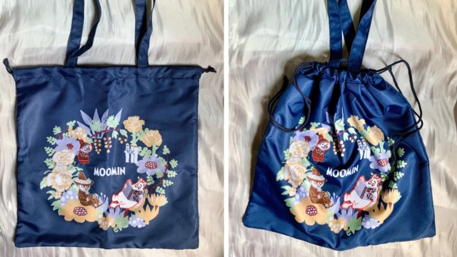 通常号(1680円)の付録は「MOOMIN(ムーミン)大容量で使いやすい!豪華刺しゅう巾着トート」。ネイビーの落ち着いた色味にフラワーサークルとムーミンキャラクターのイラストが可愛すぎる♡