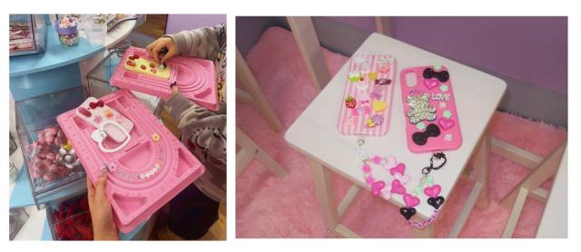 ここでは、スマホケースやスマホキーリングなど、自分だけのカスタムアクセサリーの制作体験ができるんです~っ!!