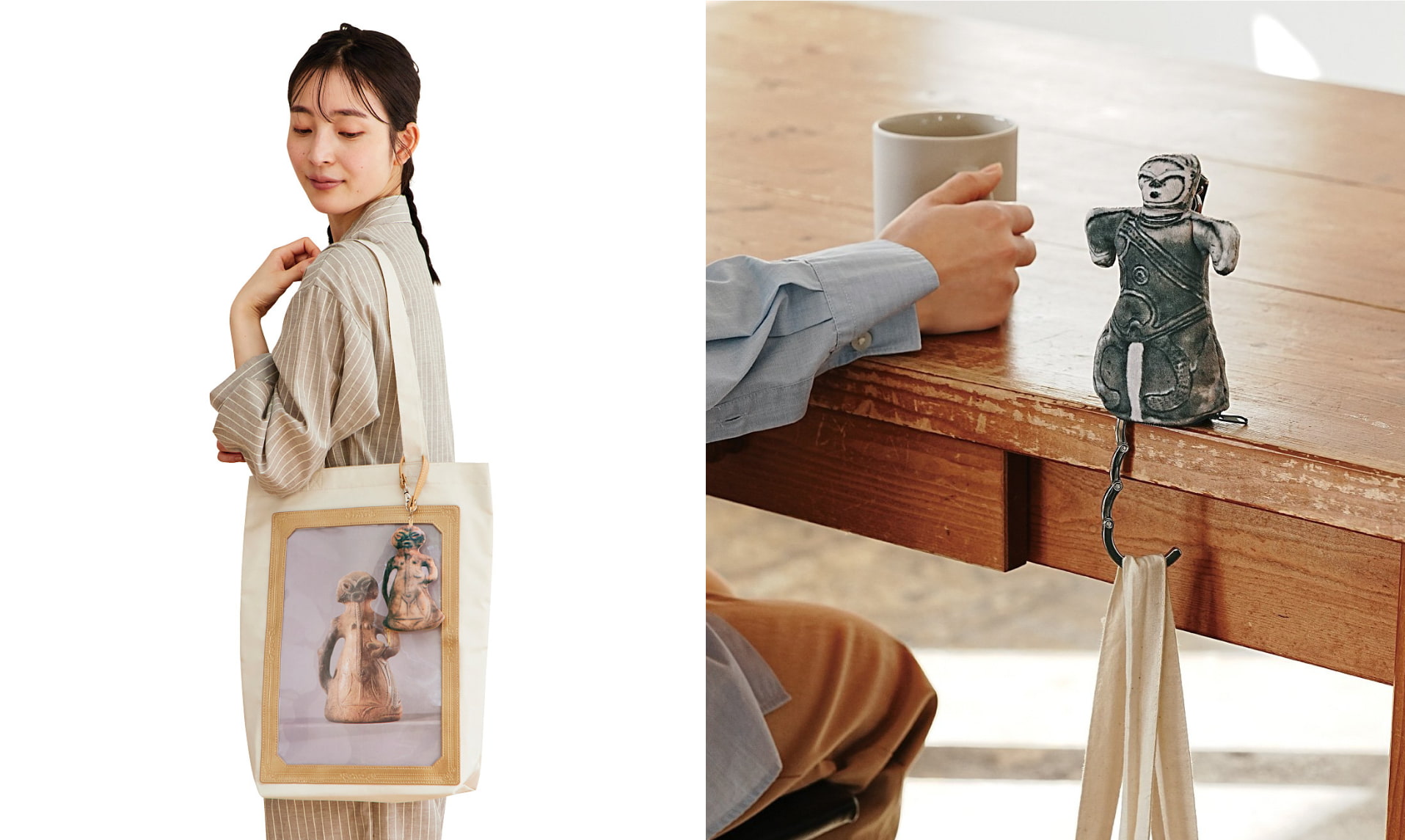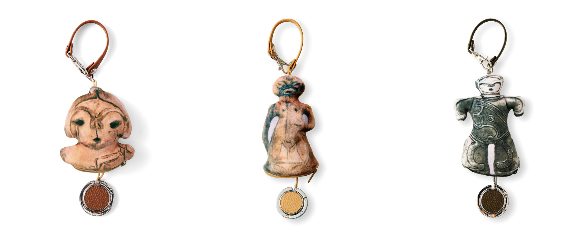 土偶バッグハンガーは存在感がすさまじく、まるで本物の土偶を持ち歩いているかのようにリアル。こりゃ、お出かけするたびに視線をひとり占めしちゃいそうだわねぇ。