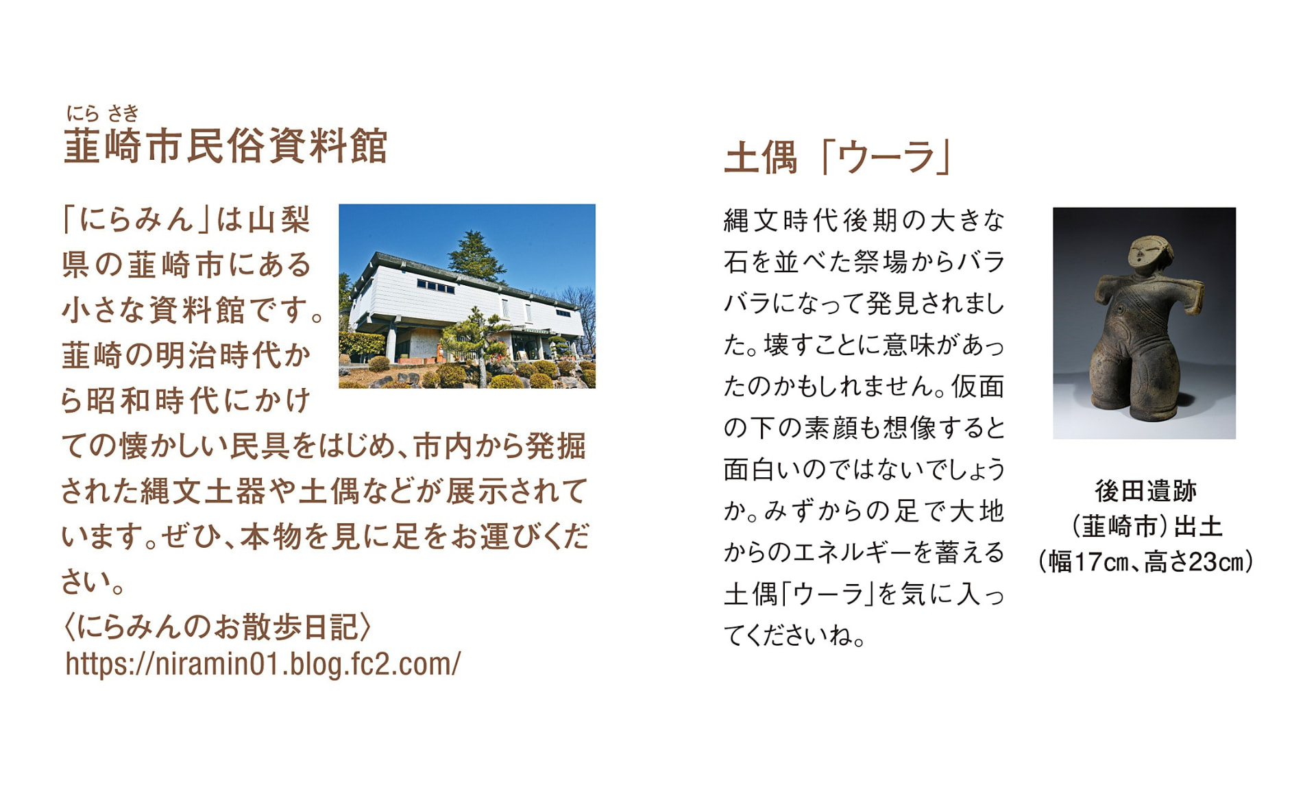 ・韮崎市民俗資料館の土偶「ウーラ」