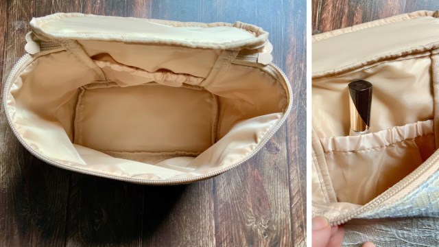 内側にはポケットがひとつ。細長いものや試供品サイズのコスメが収納しやすい小さめの収納スペースでした。