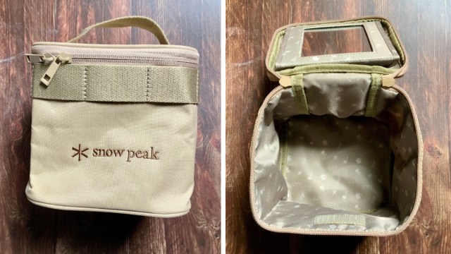 アウトドアバッグを思わせる雰囲気で男性でも持ちやすいはず。裏地はスノーピークオリジナル柄で、ポケットや仕切りはありません。