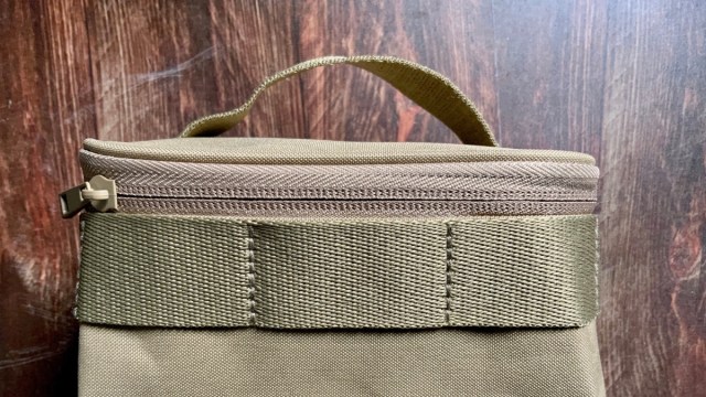 外側のテープはしっかり縫い付けられているから、アウトドアシーンではカラビナを付けてテントに吊るす……なんて使い方もできちゃいます!